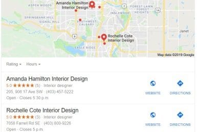 Susan has a great opportunity to overtake her lesser competitor in the Search Engine Rankings. What makes her opportunity so great is that Susan really is an accomplished, top interior designer in her City. That means we can run a social reviews campaign and build up her 5-star online reviews in ways her competitor can’t. We can Search Engine Optimize her website. We can optimize her Google My Business Listing. We can significantly improve those Top 5 Ranking Factors and leap-frog her competitor.